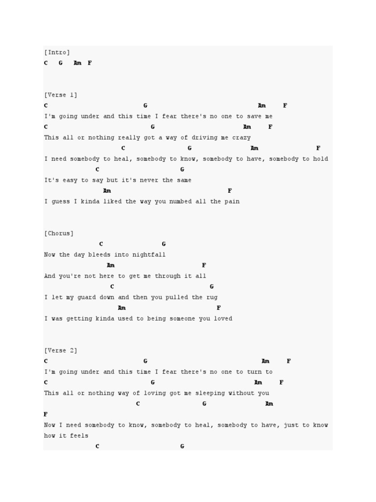 F c g am i was in nashville, you were driving home. C am g c fwhen you love someone, you feel it deep inside. Em d there ain't no one here to blame g g em d g g nothing's going to change with your old friends. When you love someone, you'll sacrifice. E minorem d majord there ain't no one here to blame g+g g+g e minorem d majord g+g g+g nothing's going to change with your old friends. E minorem d majord g+g g+g x2. We'll always love you no matter what. Here you can post a video or audio performance. Emdgcsome things you can't tell your sister 'cause she's still too young. Am f i was getting kinda used to being someone you loved. bridge dm am g and i tried to close my eyes but it hurts sometimes. Chords texts adams bryan when you love someone. When you am love someone am7 , you feel it c deep inside.